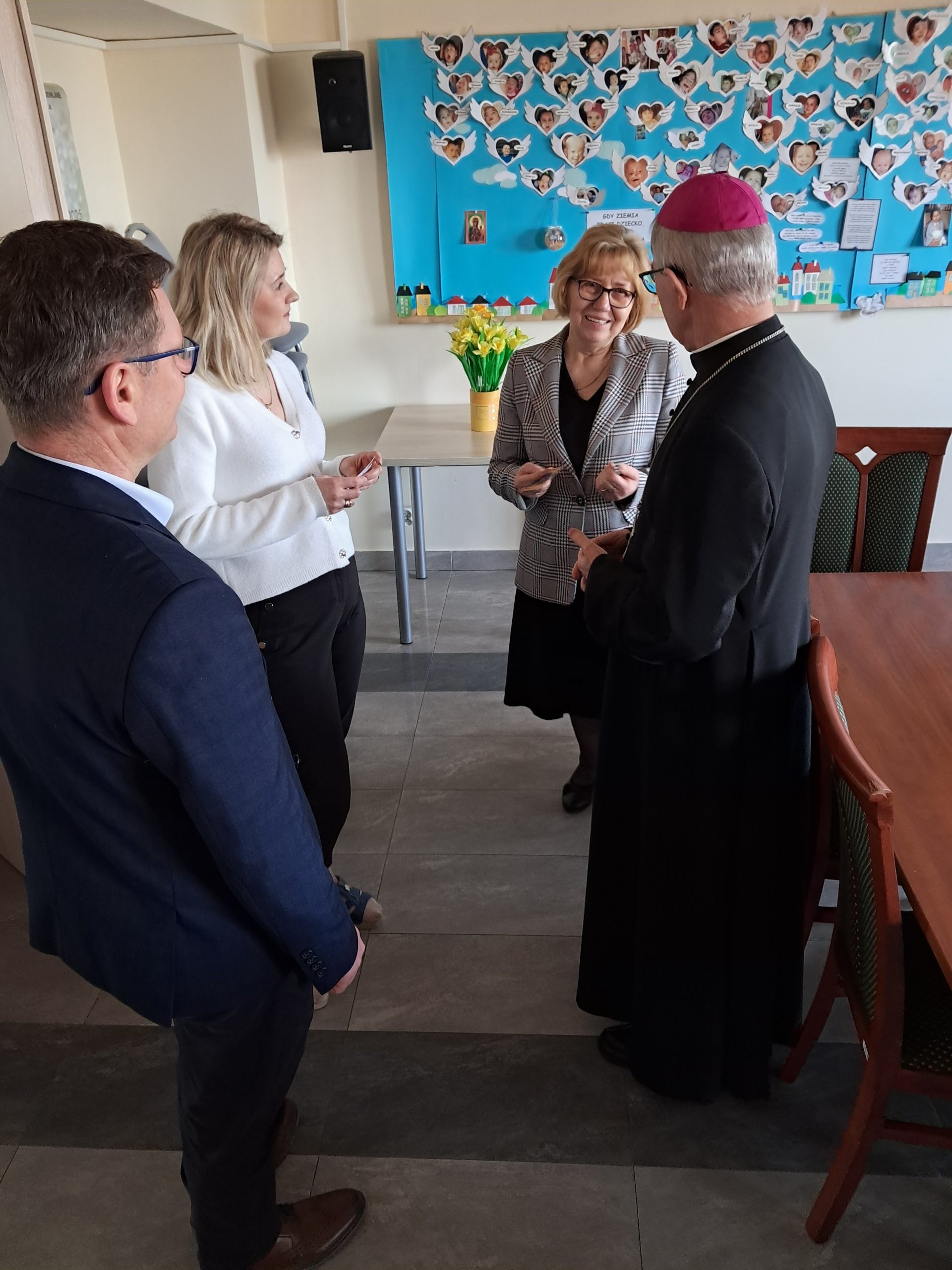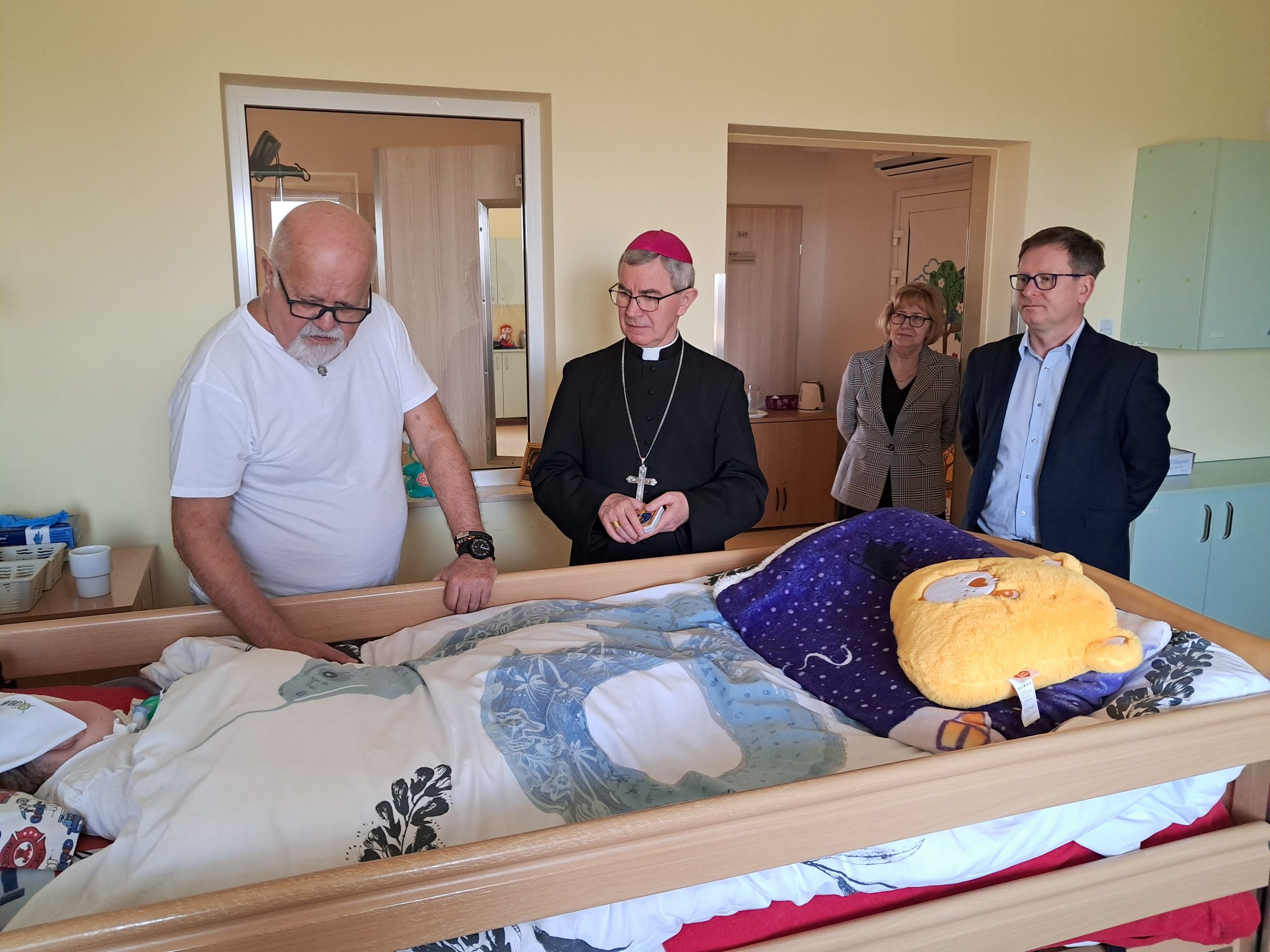 Ksiądz Biskup zapoznał się z bieżącą działalnością Fundacji Podkarpackie Hospicjum dla Dzieci. Podczas wizyty spotkał się z Podopiecznymi Oddziału Stacjonarnego Hospicjum. Odwiedził również Regionalną Placówkę Opiekuńczo-Terapeutyczną „Tęczowy Domek” błogosławiąc Podopiecznych.